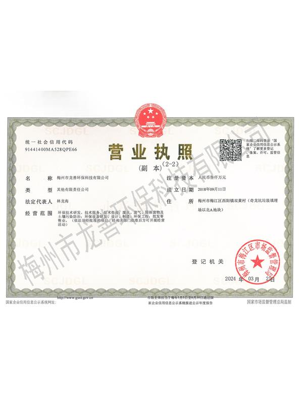 梅州市龍善環(huán)保科技有限公司為龍善環(huán)保股份有限公司(簡稱“龍善環(huán)保”)子公司。龍善環(huán)保于1995年12月成立,注冊資本為人民幣6,000萬元,總部位于深圳市南山區(qū)月亮灣大道2078號兆龍大樓16層。公司經生態(tài)環(huán)境部、廣東省生態(tài)環(huán)境廳、深圳市生態(tài)環(huán)境局、深圳市交通運輸委員會、深圳海事局等部門許可專業(yè)從事陸地和海洋環(huán)境保護產業(yè)的高科技民營企業(yè),主要經營業(yè)務包括工業(yè)廢物收運、資源化利用和無害化處理處置、海洋船舶污油水接收和集中處理處置、突發(fā)環(huán)境事故清污應急處置等......